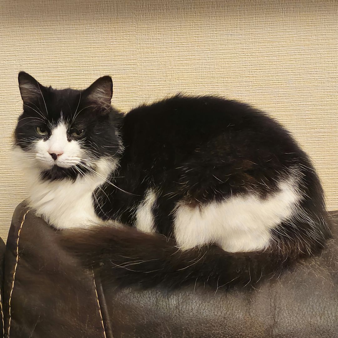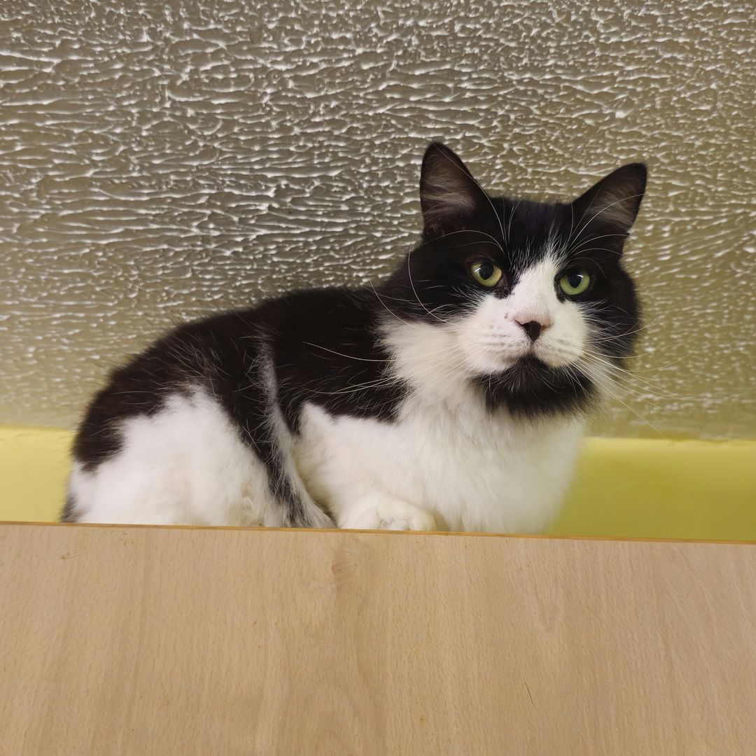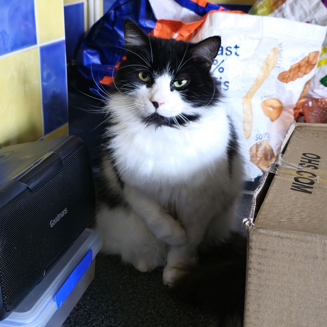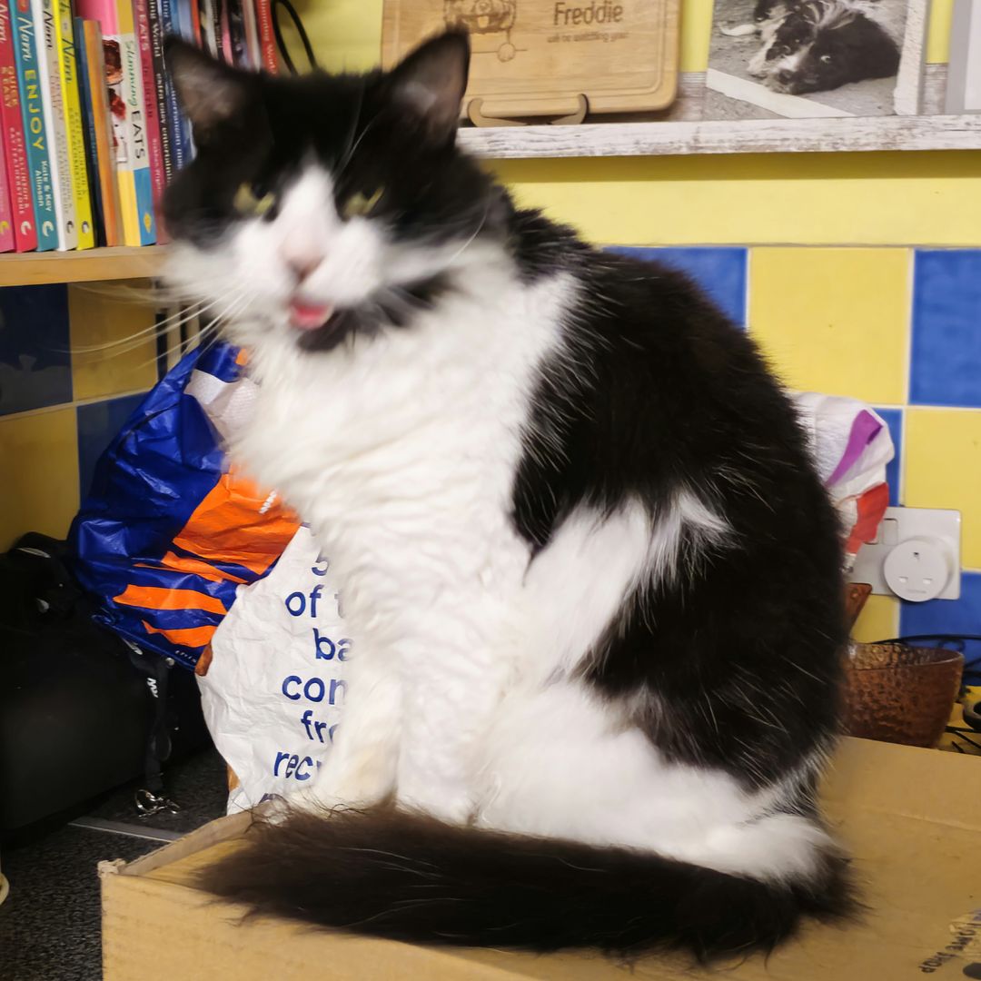 Charlie is a magnificent fluffy wanderer who will disappear for a few days then come back and shout at his staff, but does like a cuddle, for a few moments, on his terms only
