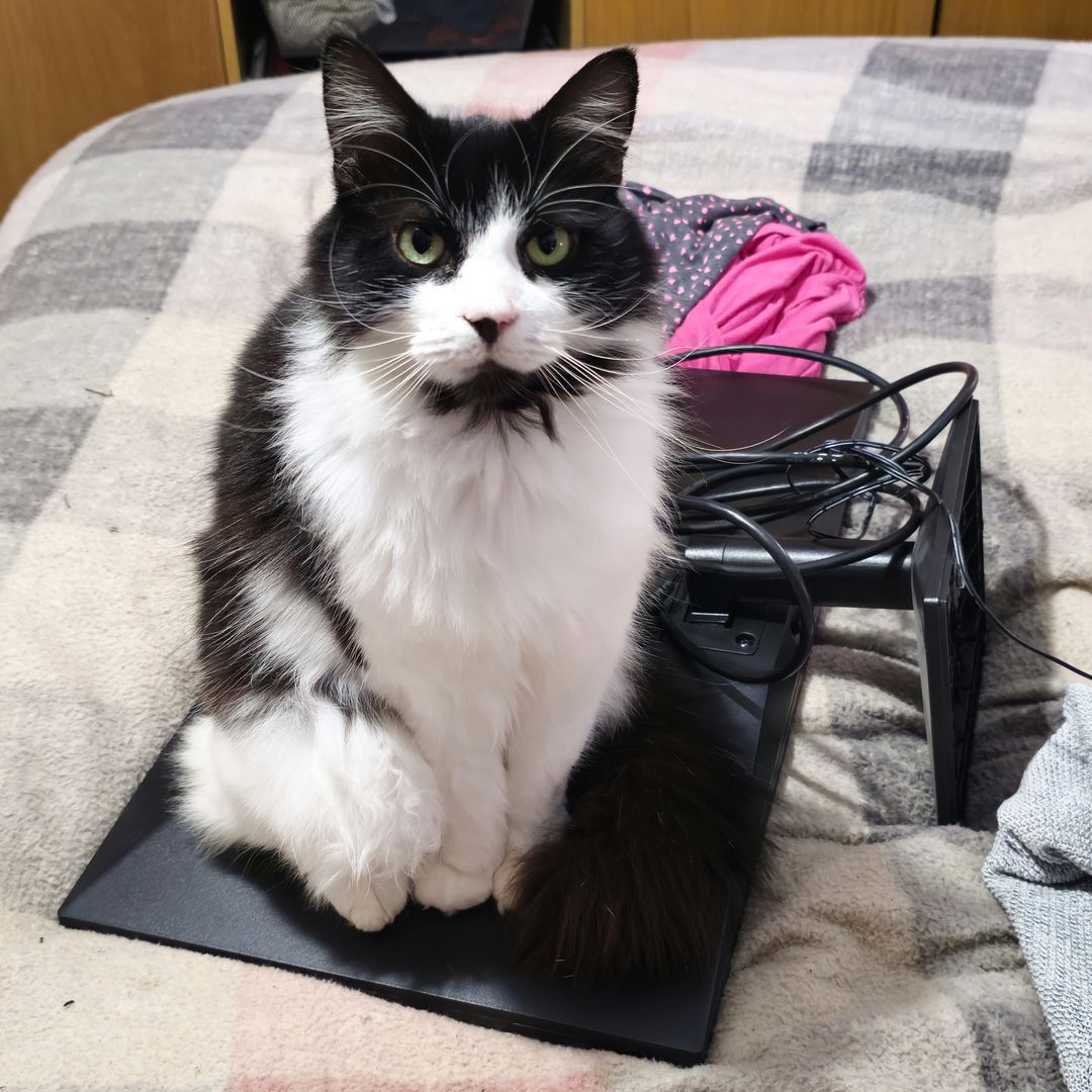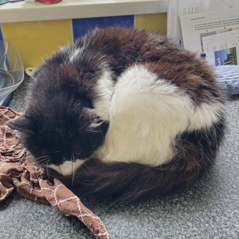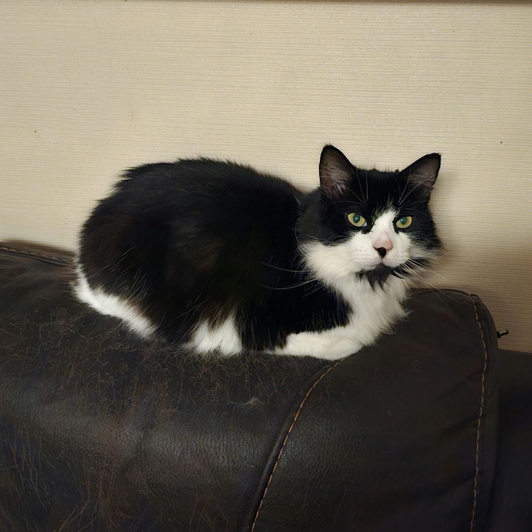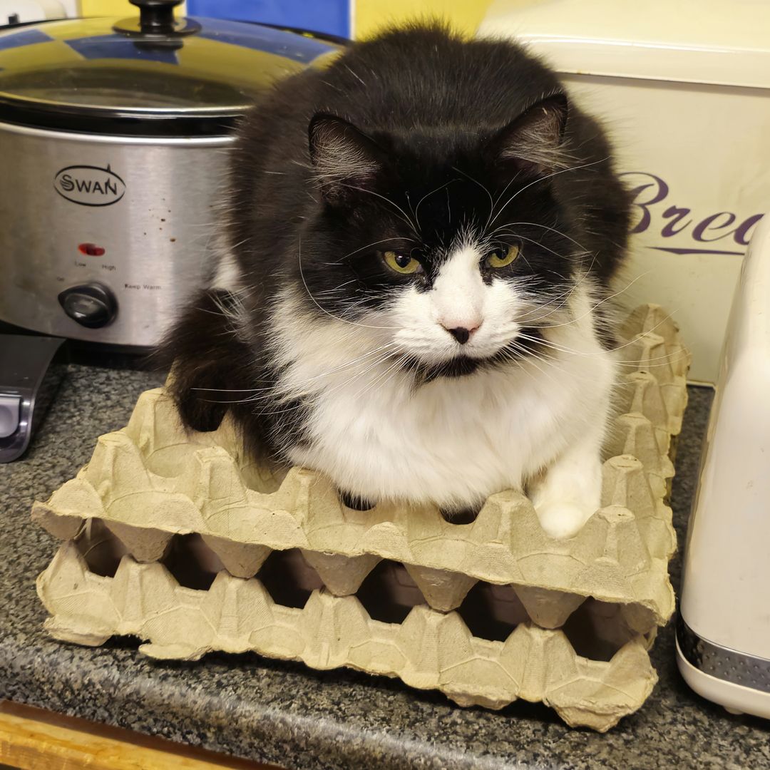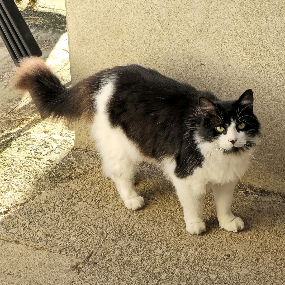 Charlie is a magnificent fluffy wanderer who will disappear for a few days then come back and shout at his staff, but does like a cuddle, for a few moments, on his terms only