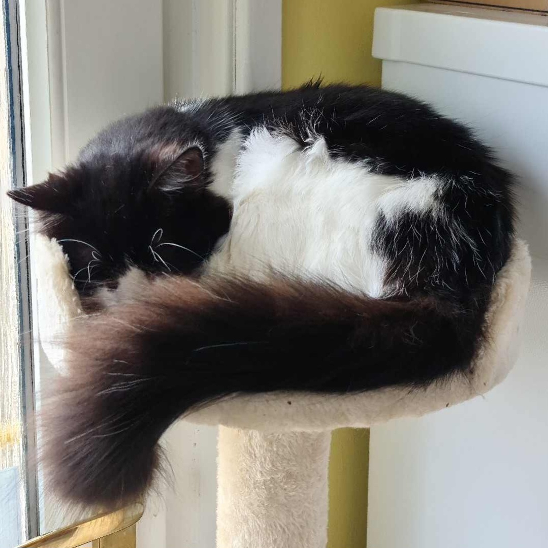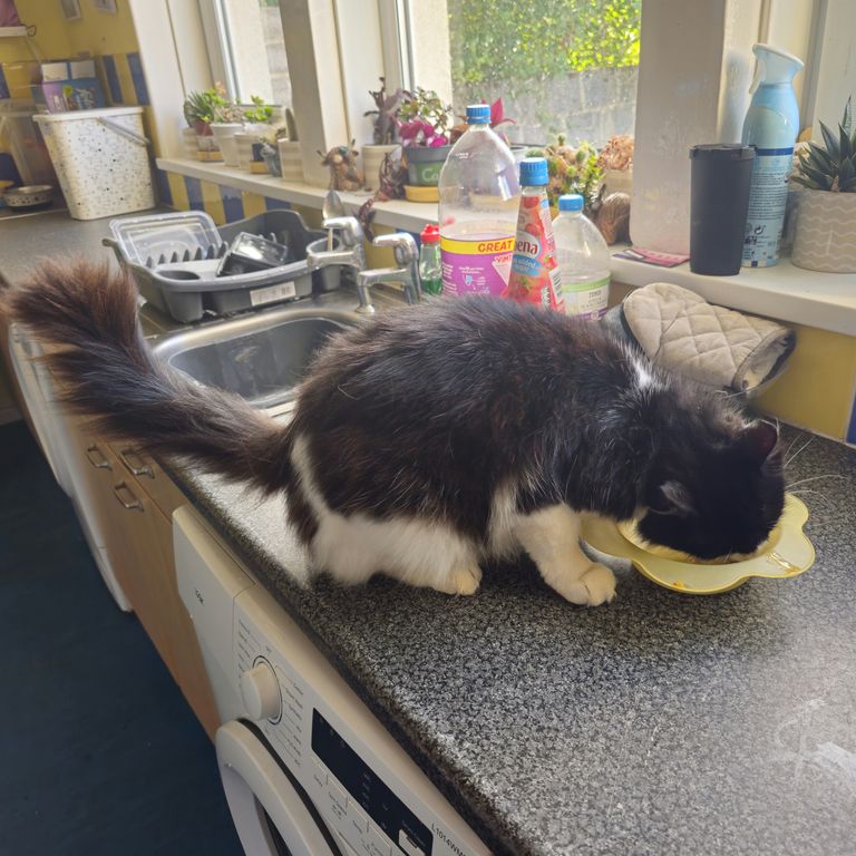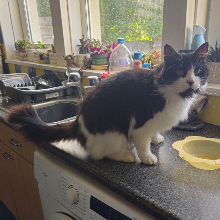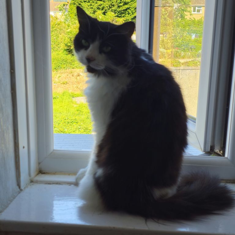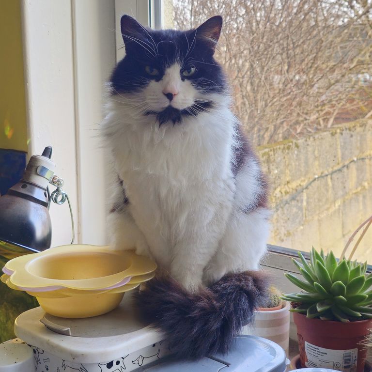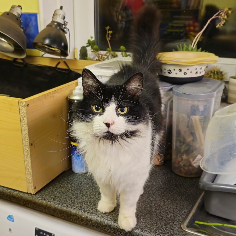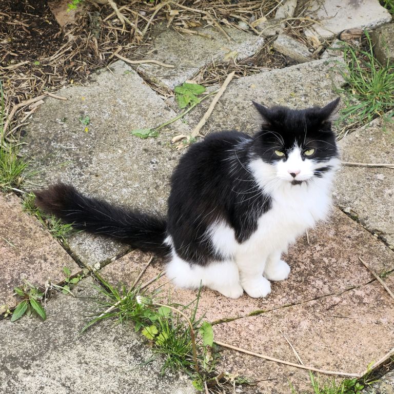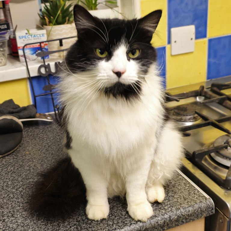 Charlie is a magnificent fluffy wanderer who will disappear for a few days then come back and shout at his staff, but does like a cuddle, for a few moments, on his terms only
