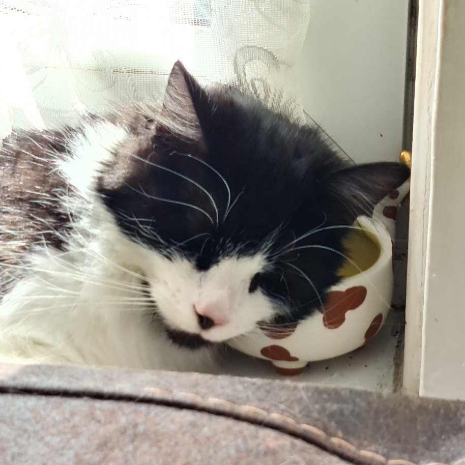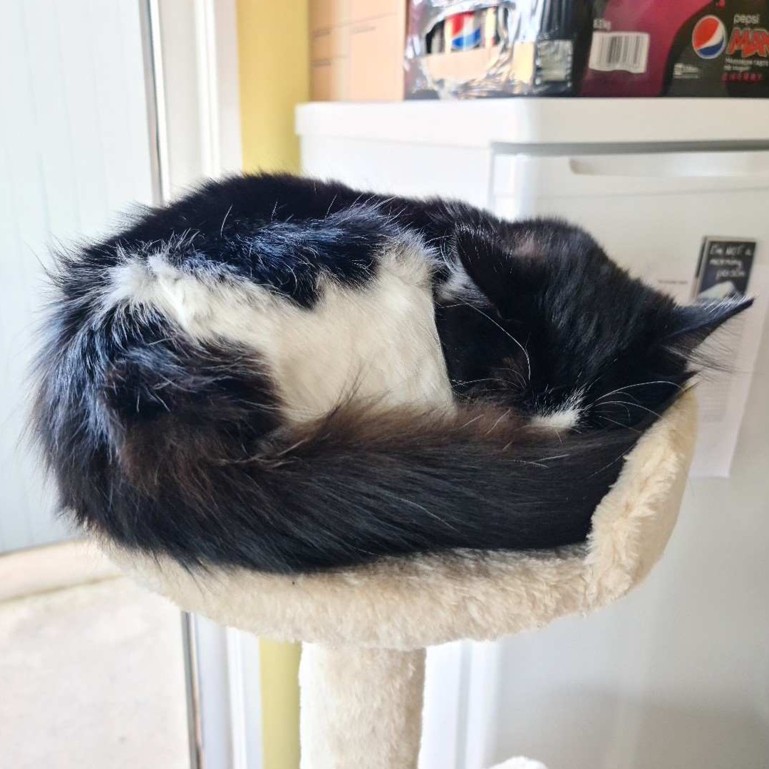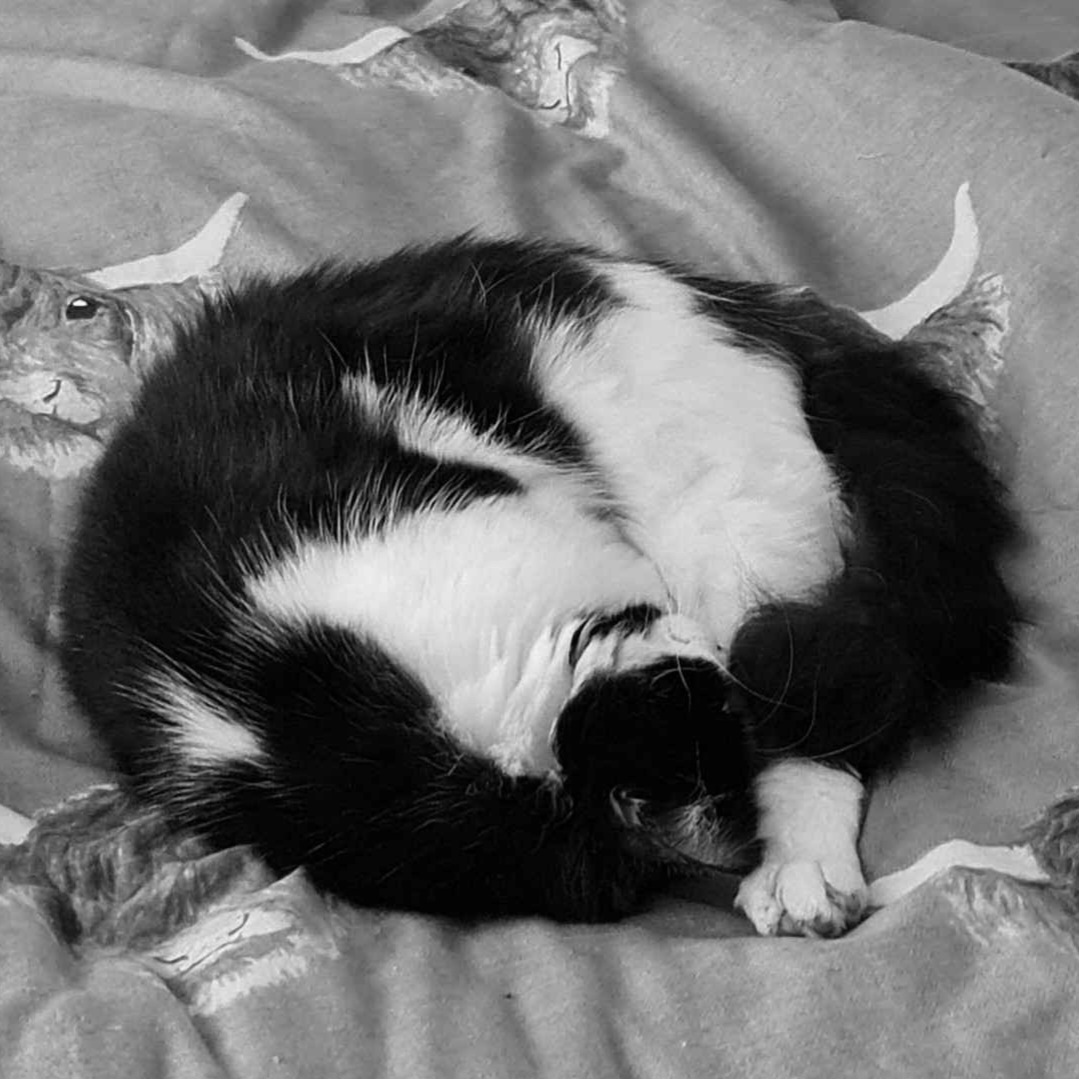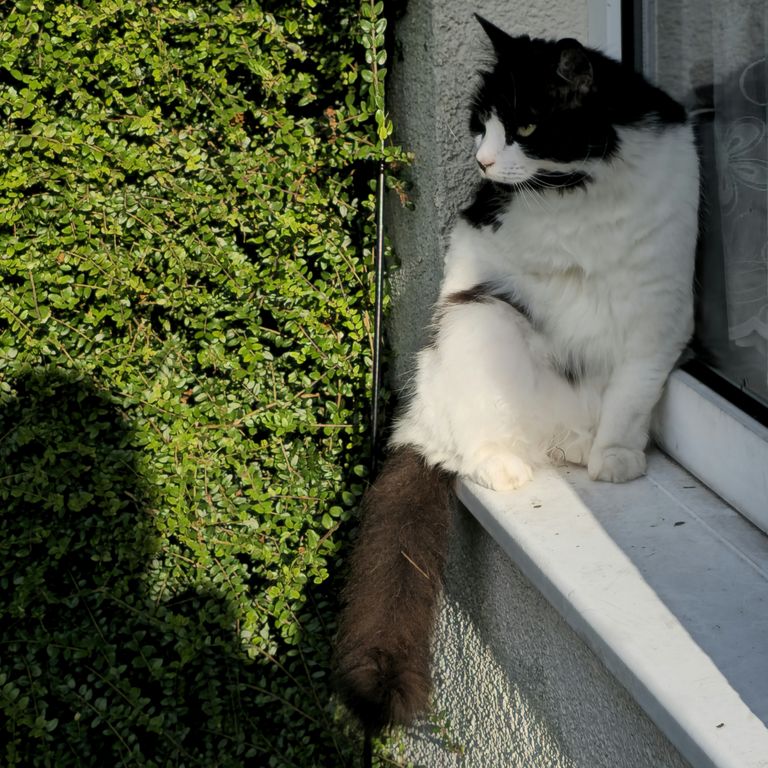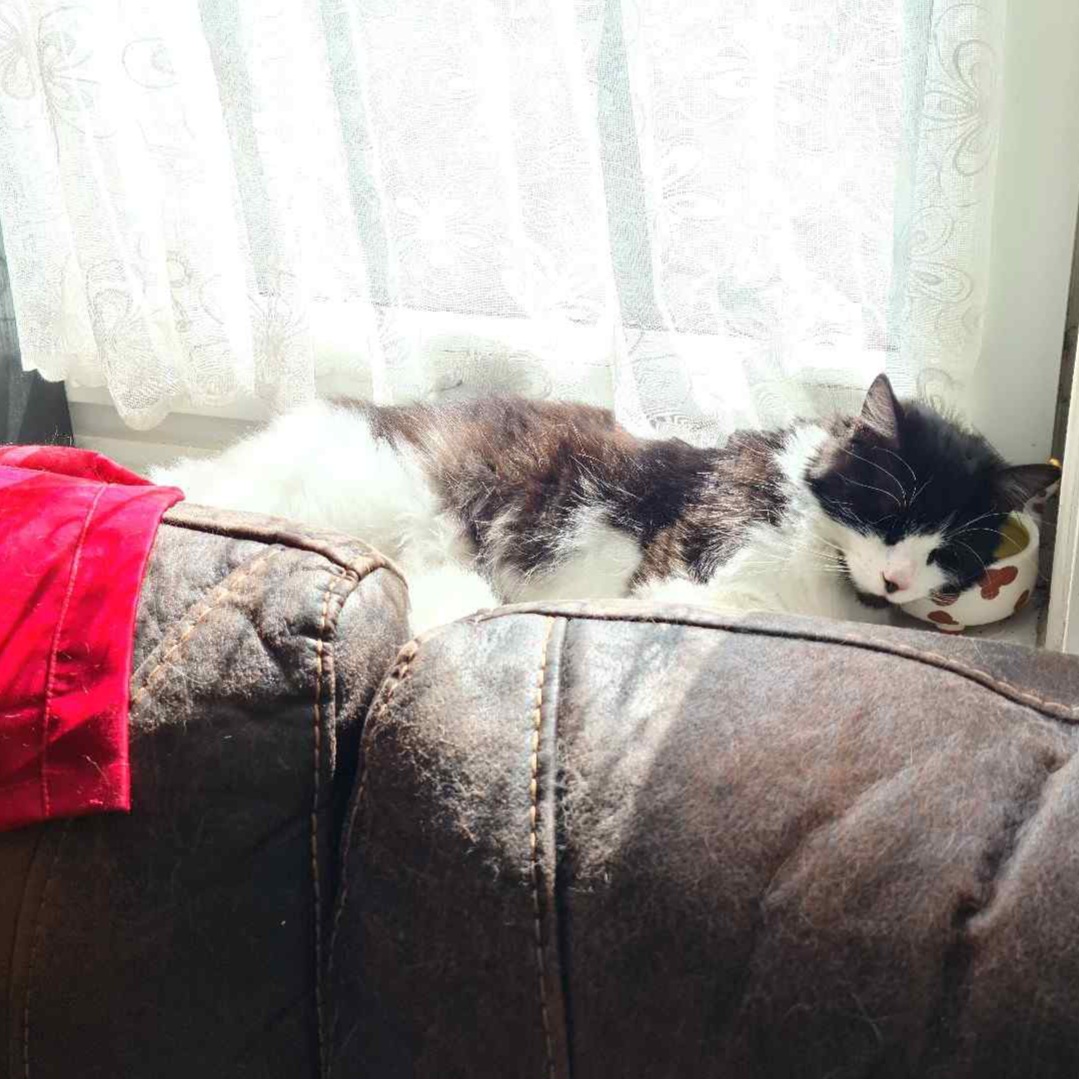 Charlie is a magnificent fluffy wanderer who will disappear for a few days then come back and shout at his staff, but does like a cuddle, for a few moments, on his terms only
